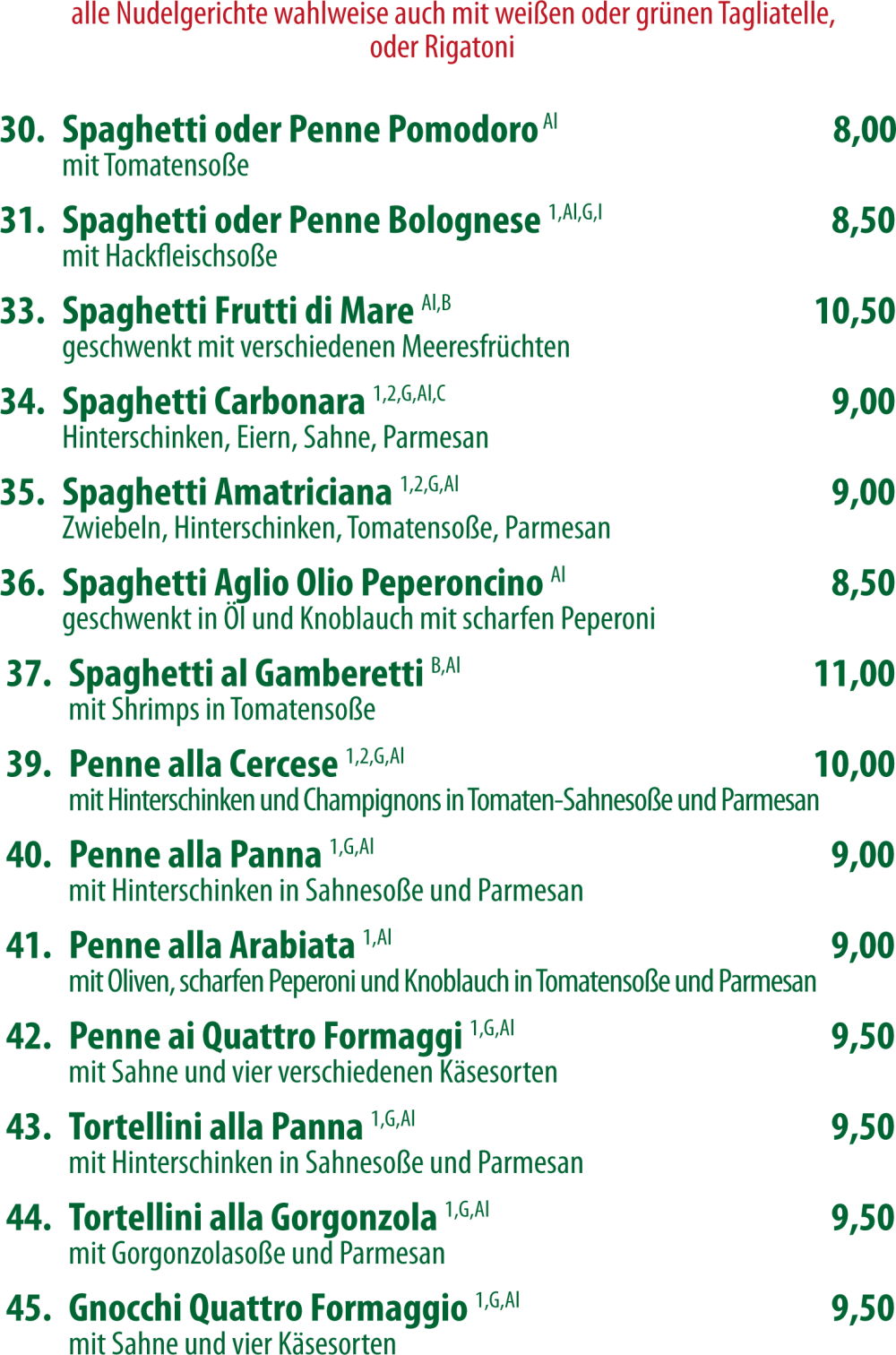 Es gilt die vor Ort ausgehängte Speisekarte.
