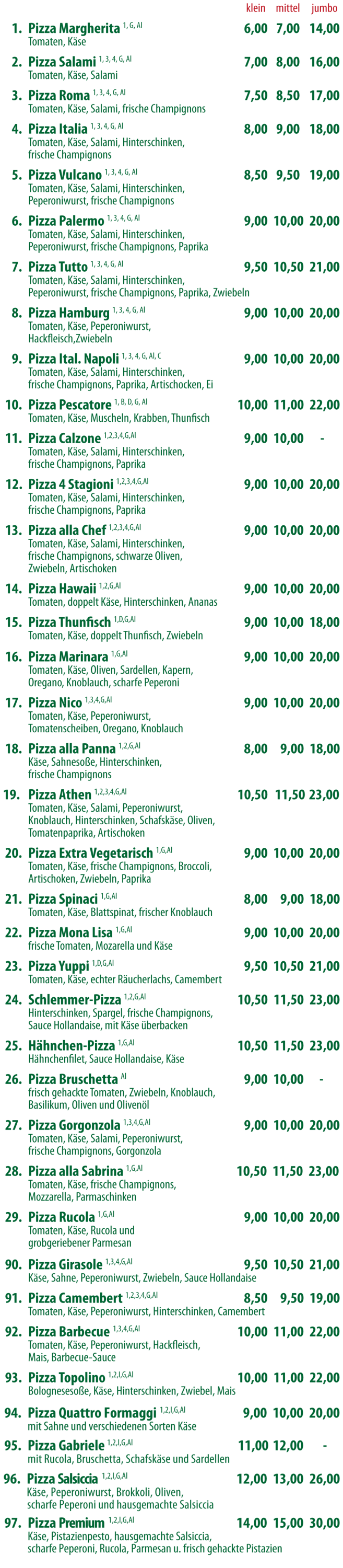 Es gilt die vor Ort ausgehängte Speisekarte.